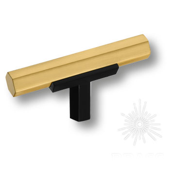 Ручка кнопка 74-Matt Black-Matt Gold, материал Замак, цвет Чёрный, отделка Золото Черный, 32*12*60 мм